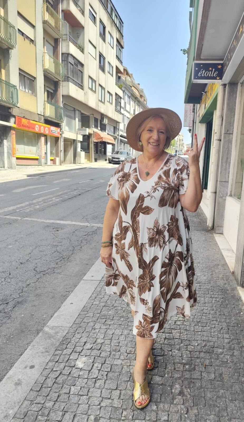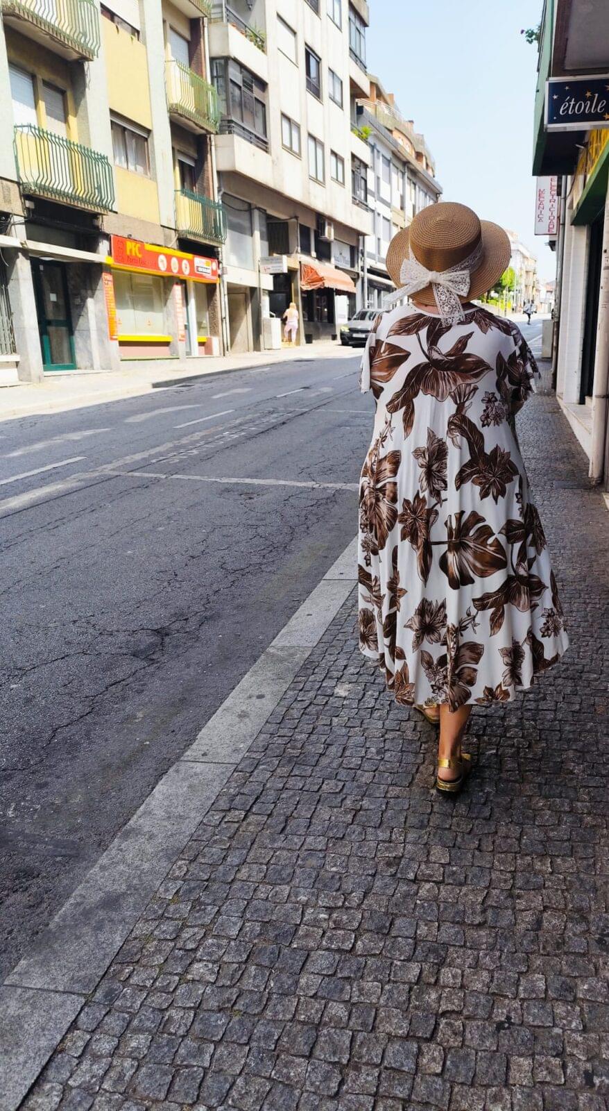 O design é uma fusão de elegância e frescor. Seu tecido suave e fluido permite movimento com conforto, enquanto as flores e folhas castanhas bordadas adicionam um toque artístico e sofisticado. O contraste das cores cria um visual atemporal e delicado, ideal para quem busca algo único e memorável.